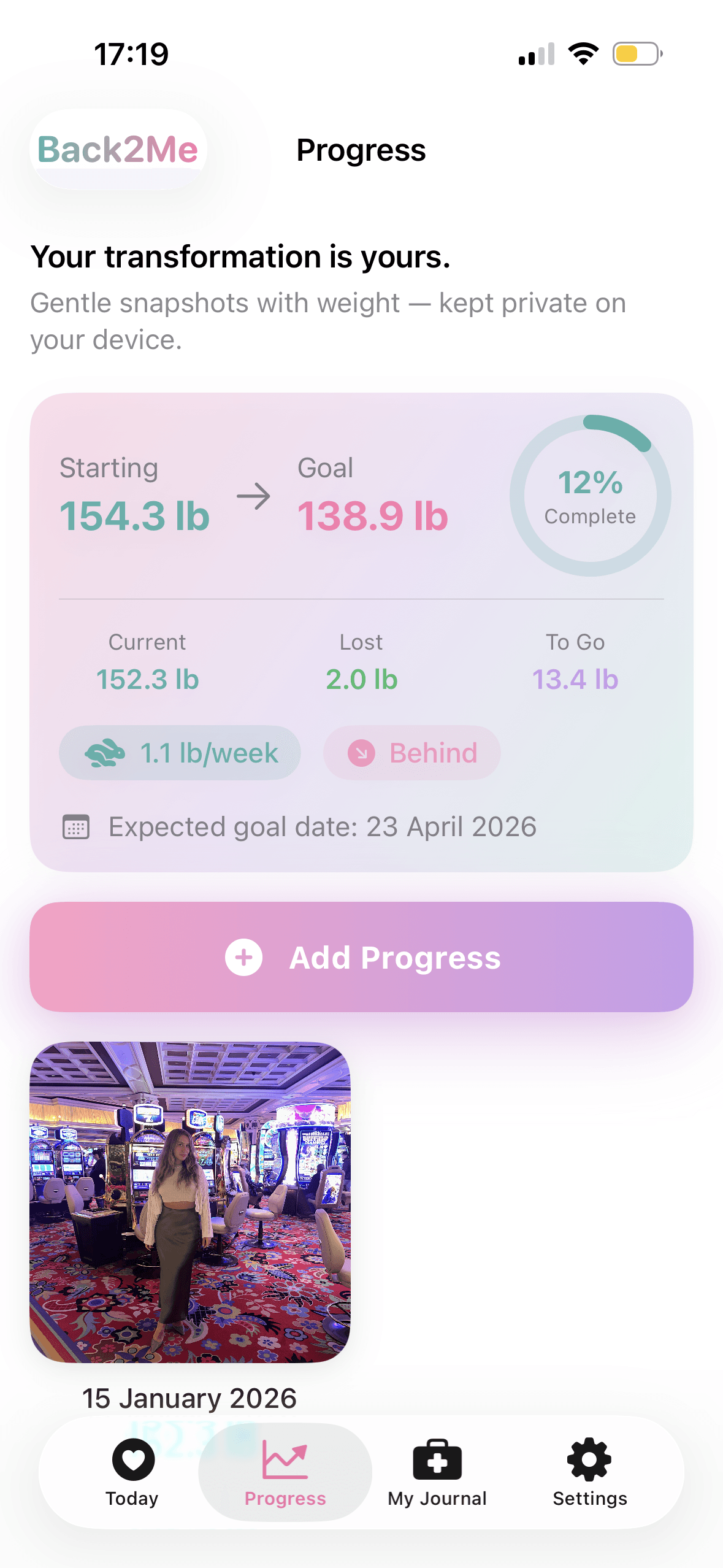 Your daily habits turn into visible growth. Back2Me helps you stay consistent and see the small steps that lead to real progress.